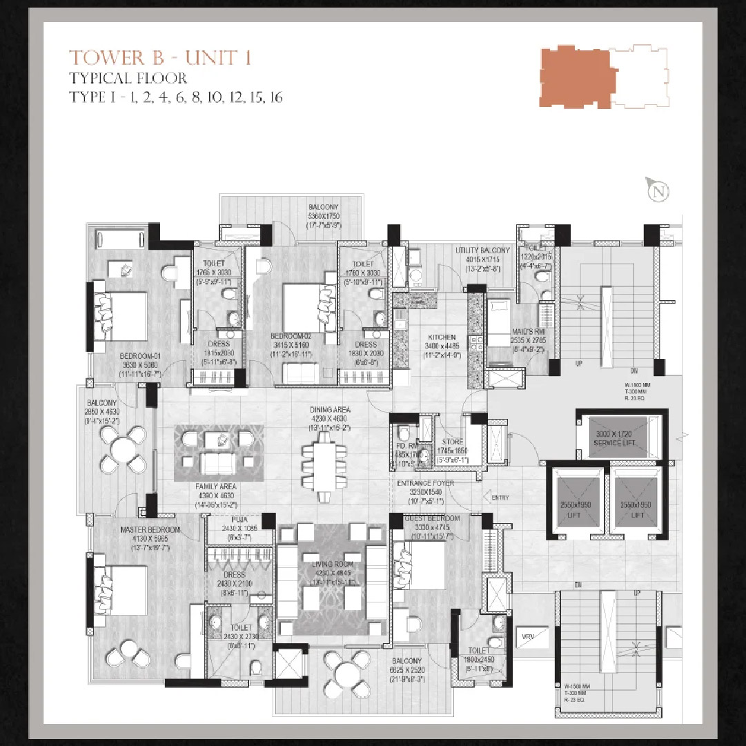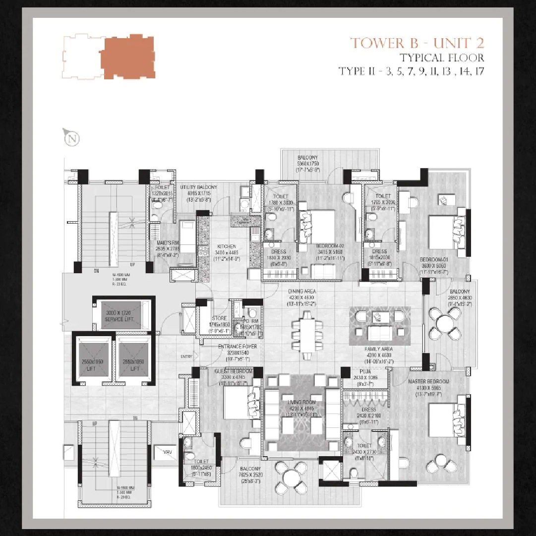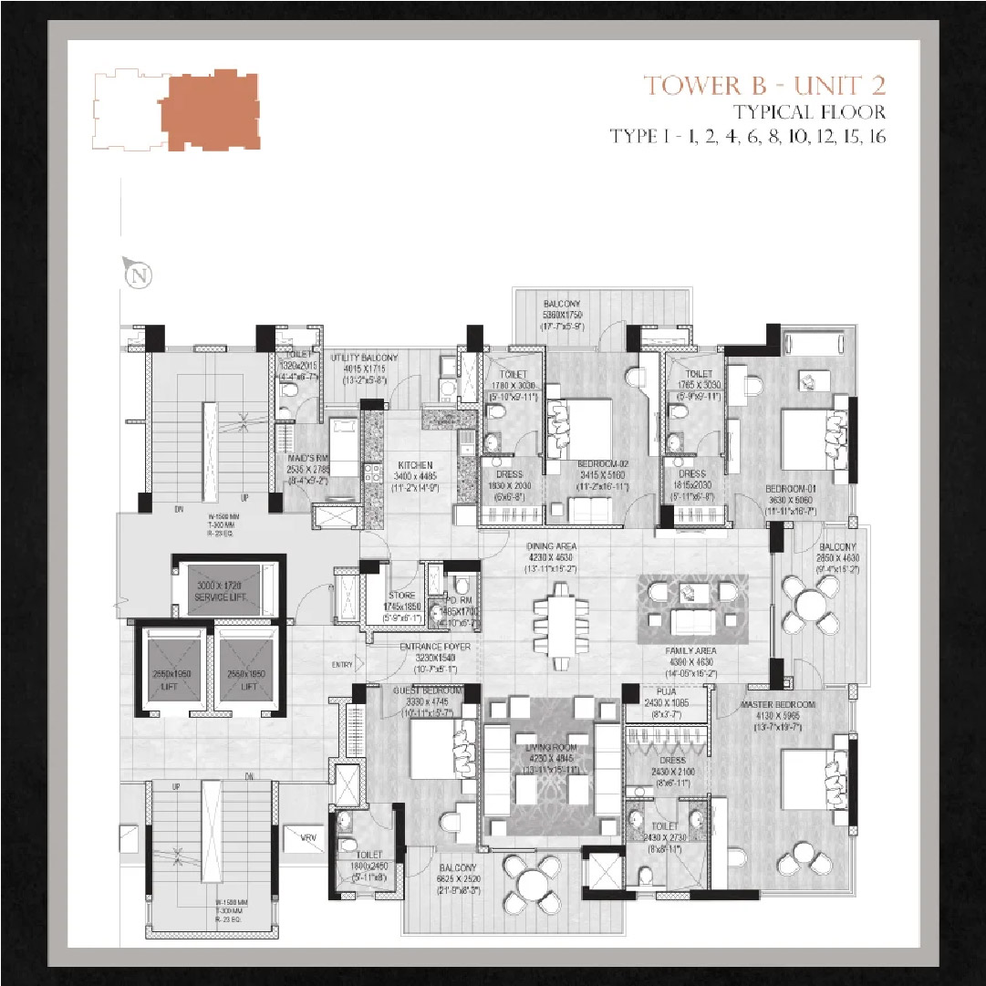 2 nos. High-speed elevators in all towers and one service elevator will be available.