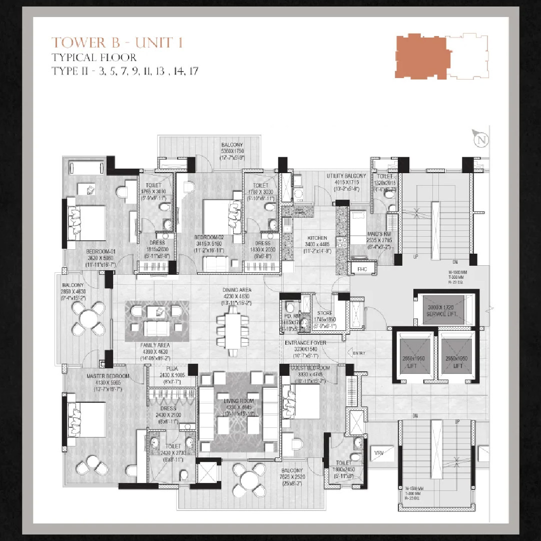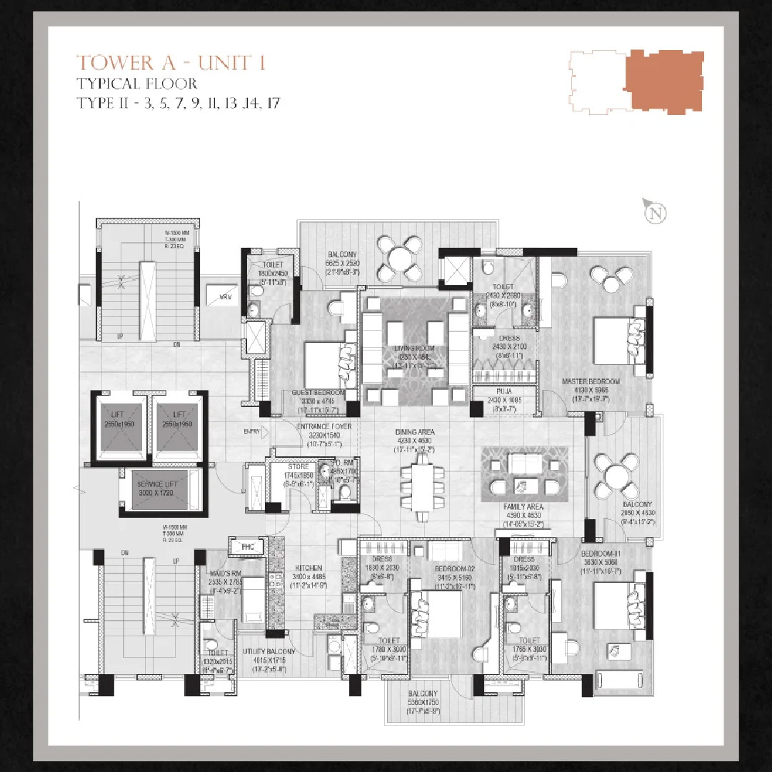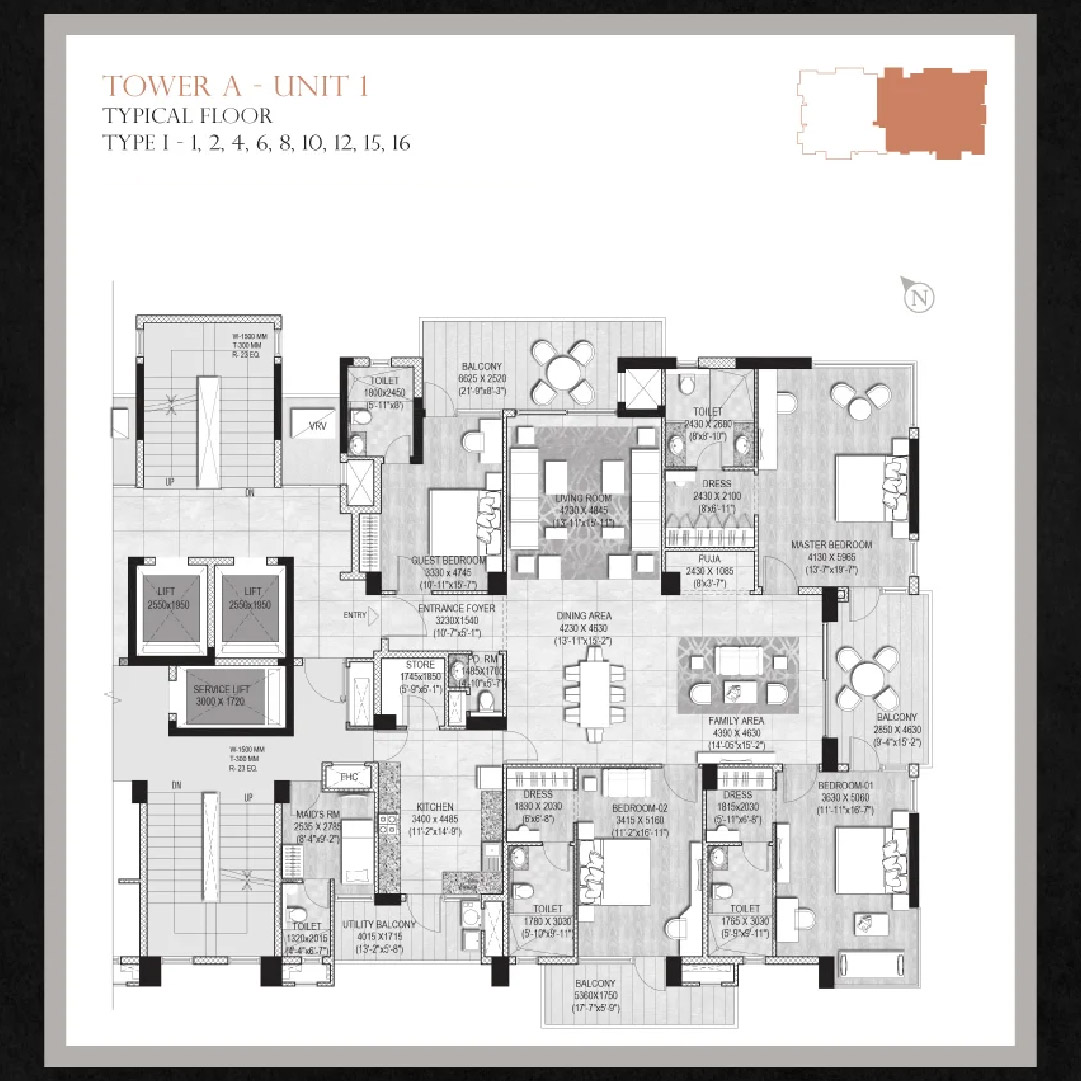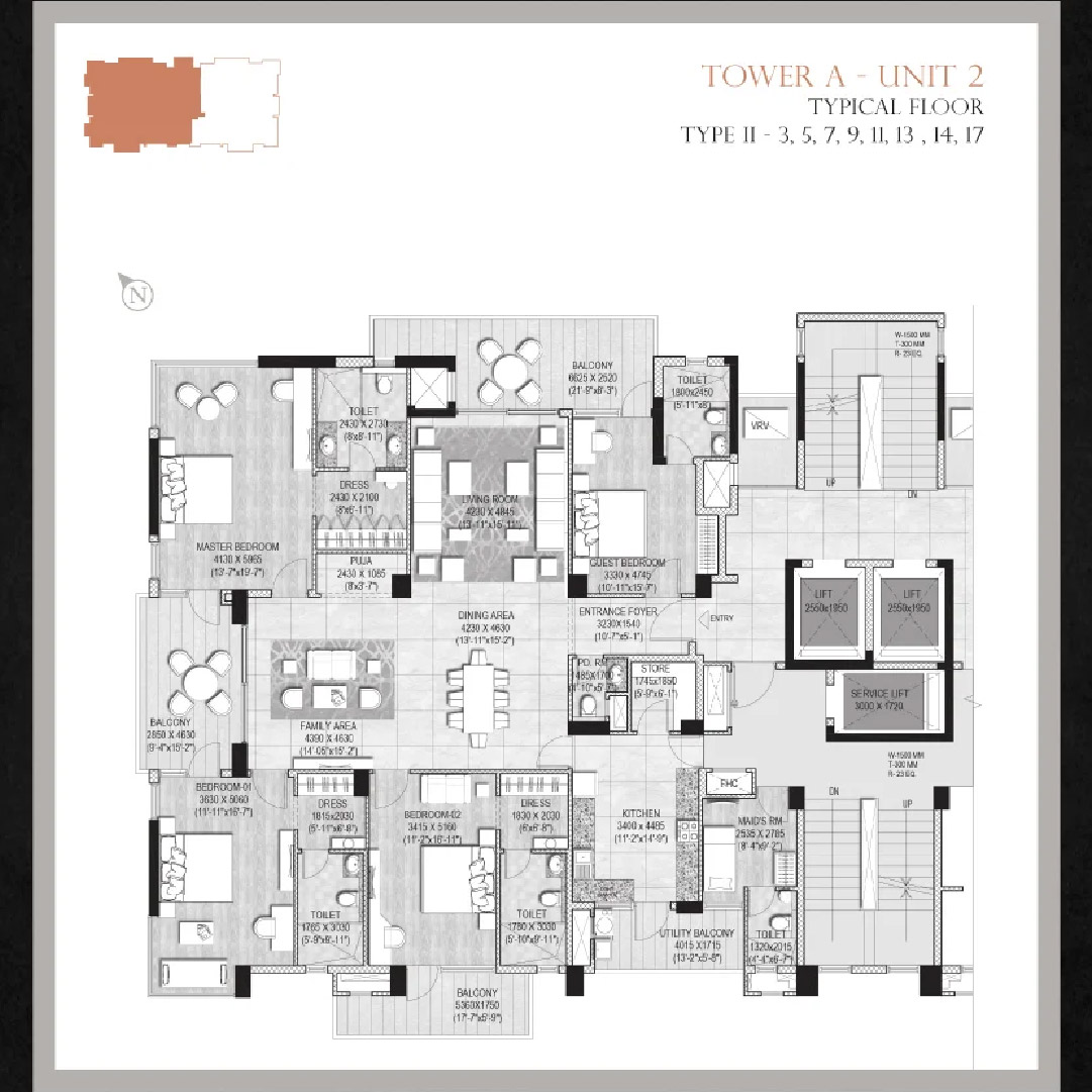 2 nos. High-speed elevators in all towers and one service elevator will be available.
