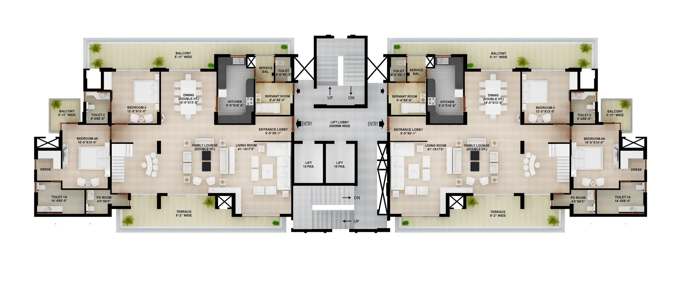 - Fire Fighting facilities as per plans approved by Fire Dept.